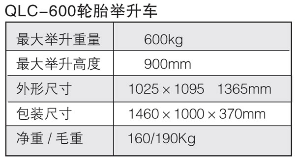 | 【產(chǎn)品名稱】:QLC-600輪胎舉升車 |