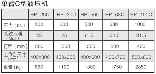 單臂C型油壓機 OPEN SIDE “C” TYPE HYDRAULIC PRESS